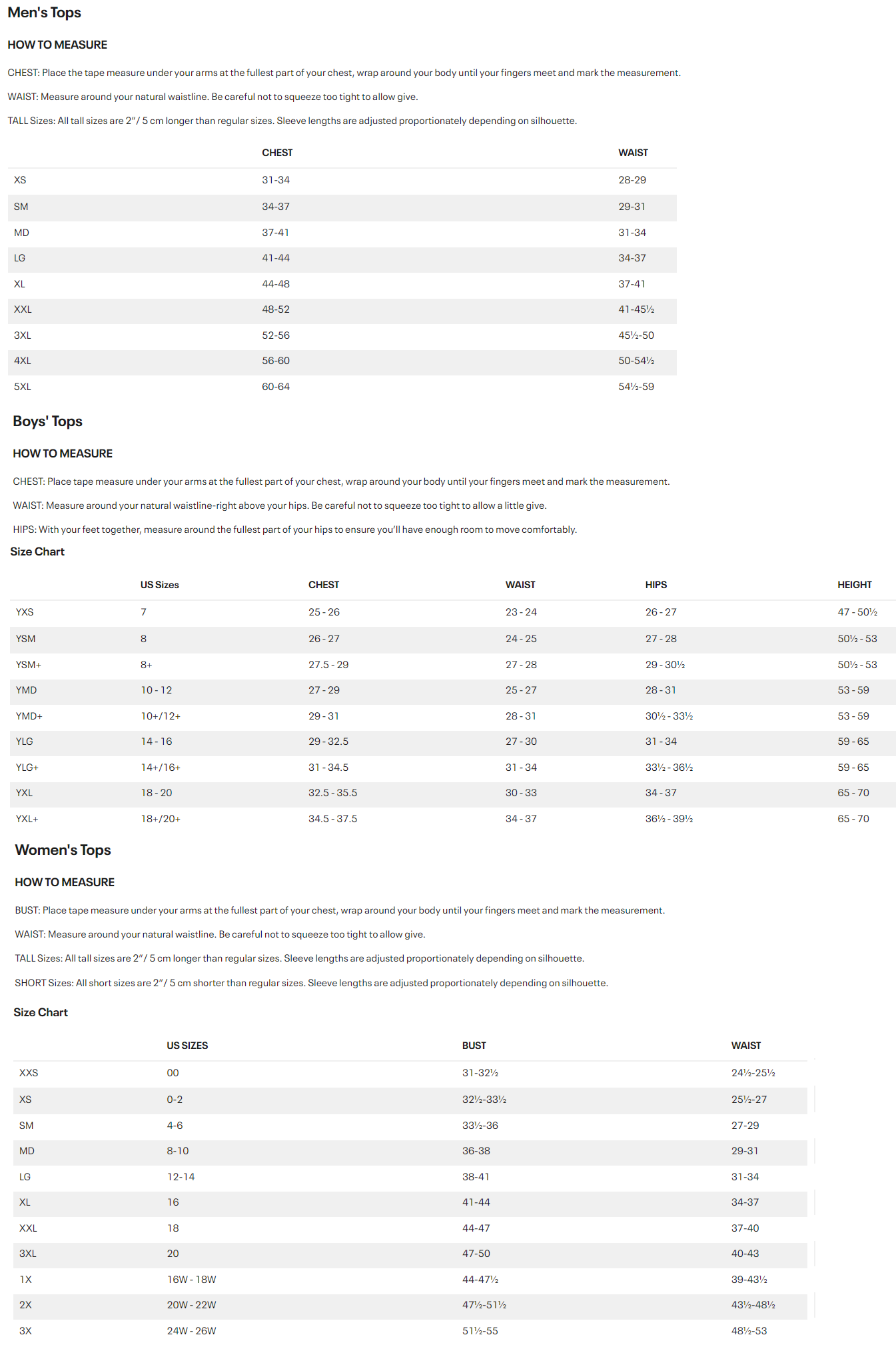 Click on the below sizing chart for additional information.